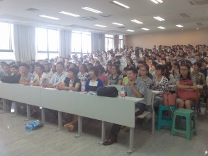 秦康美、何新容、孙展望三位副教授就法学专业特点、法务会计法务金融特色方向特点、新生群里反映的问题一一作了介绍。“法学是精英之学,学法学的人应该成为家庭、单位和社会的顶梁柱,成为亲人、朋友的依靠”,“南审法学有潜力,是一支被低估的股票”,“可能你不能学你所爱,但你一定要爱你所选”等话语激起阵阵掌声,他们对新同学提出几点建议:一、给自己创造机会;二、树立目标,从今天起用实际行动撰写自己的大学生简历;三、做到会读、会写、会说;四、学会自主学习,全方位提高综合素养。
