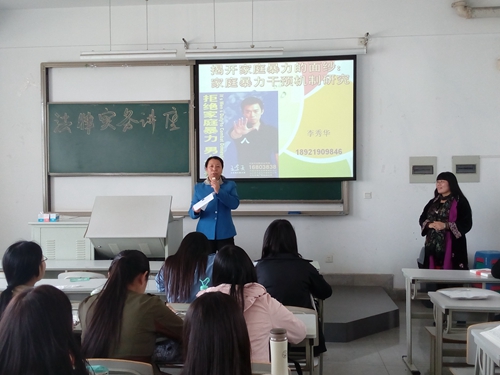 最后,李秀华就家暴干预机制作了阐述,主要包括有效的心理介入和法律介入。她还就一些前沿性问题给同学们做了介绍,比如恋爱中的暴力、精神与性的暴力、庇护所的设置与运作等等,而这些内容是同学们在课本上所寻找不到的,也是引导学生理论结合实际的很好的切入点。