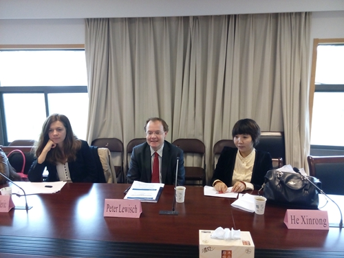 为加快法学学科的建设,促进法学科国际化交流程度,秉承学校“质量、特色、国际化”的办学理念,10月27-29日,奥地利维也纳大学51视频 Peter Lewisch 教授和他的助理Klara Keglevic等两位学者应邀来校,进行为期3天的访问和学术交流。27日晚餐,王会金副校长宴请了这两位学者,并向他们赠送了礼品。28日,两位学者 在51视频 做了学术讲座,与51视频 老师进行了研讨活动。