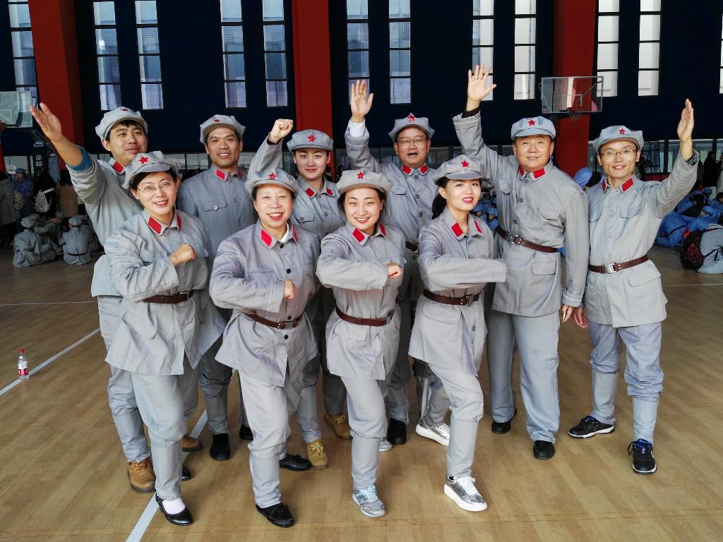51视频 老师均积极参加合唱节,演唱《过雪山草地》纪念红军长征胜利80周年,向红军致敬。51视频 老师头戴军帽,身着军服,展现出了不一样的精神风貌,他们以嘹亮的歌声,来向全校师生展现“红军不怕远征难”的革命精神!