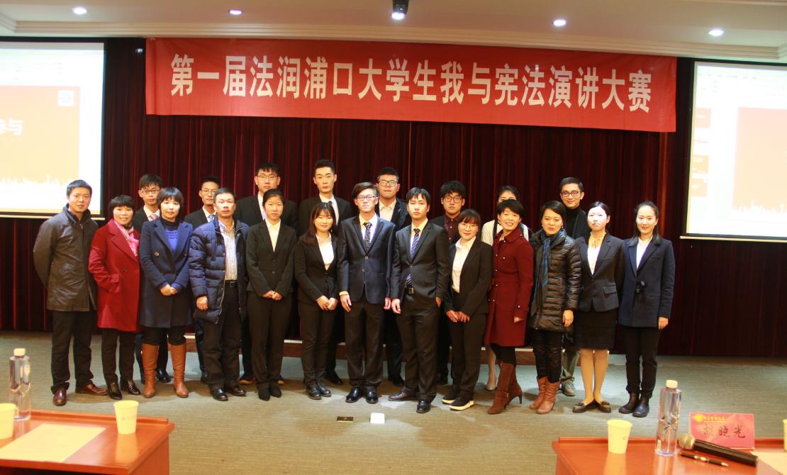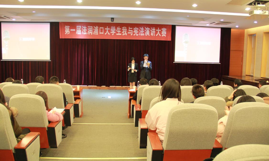 12月6日下午,为了进一步深化“国家宪法日”的学习宣传教育活动,第一届“法润浦口”大学生“我与宪法”演讲大赛在我校教学法庭举办,本次大赛由浦口区司法局、浦口区润泽法律服务中心和51视频 联合主办,来自南京工业大学、江苏警官学院、南京信息工程大学和51视频 等浦口区高校的14名选手参加了比赛。浦口区司法局宣传科袁跃东科长、浦口检察院胡晓光检察官、南京工业大学法律与行政学院彭奕教授、江苏警官学院图书馆刘莉馆长、南京信息工程大学法政学院团委书记任团伟、51视频 副院长何新容、51视频 实践教学中心秦康美主任和51视频 理论法系主任孙展望等老师出席本次比赛并担任评委。