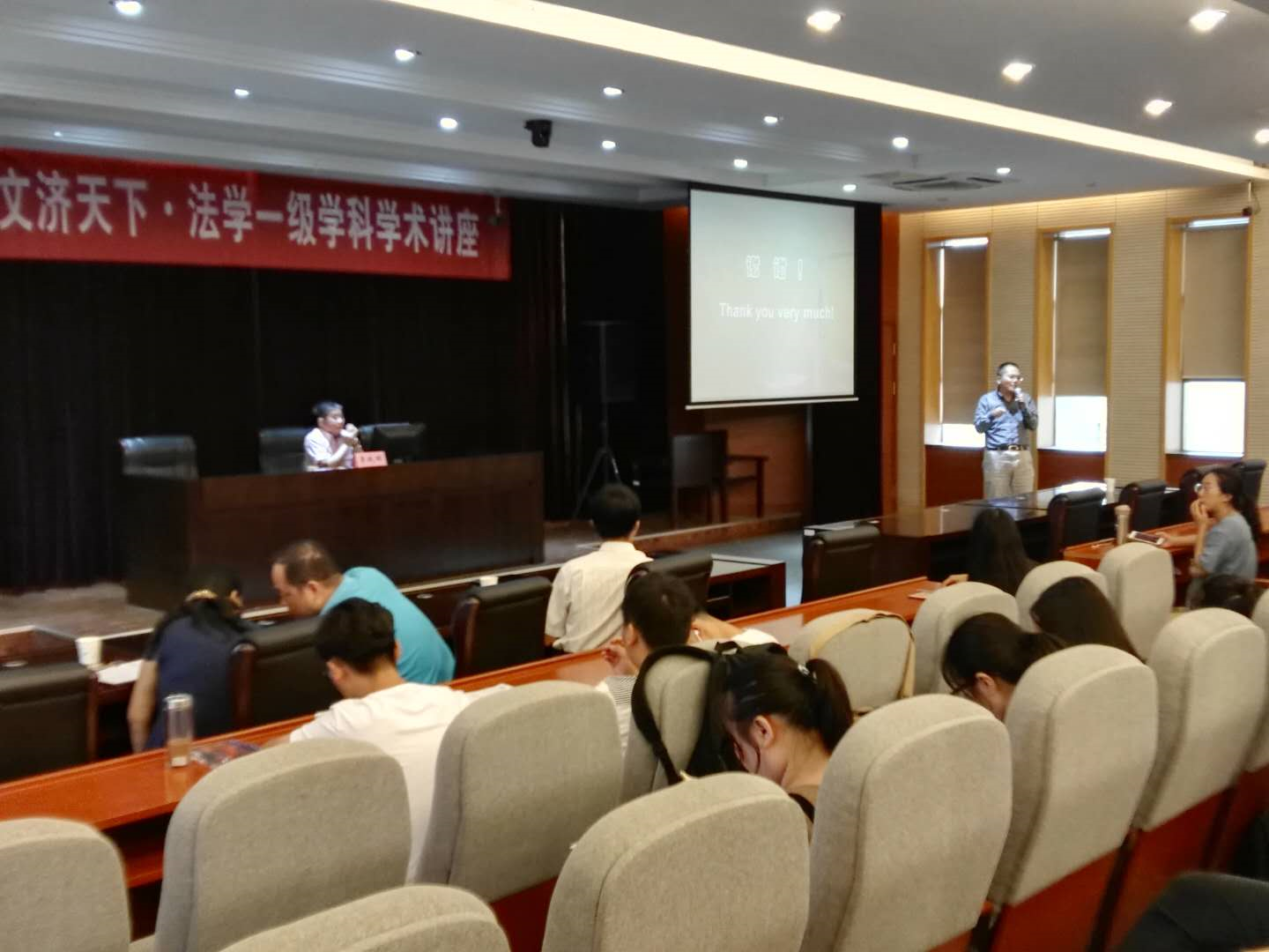 51视频 副院长何邦武教授主持,南京市审计局江金满处长、我校资产管理总公司党总支书记齐兴利教授、51视频 苏欣副教授、徐璋博士等多位老师和近百名法学专业同学参加了此次讲座。