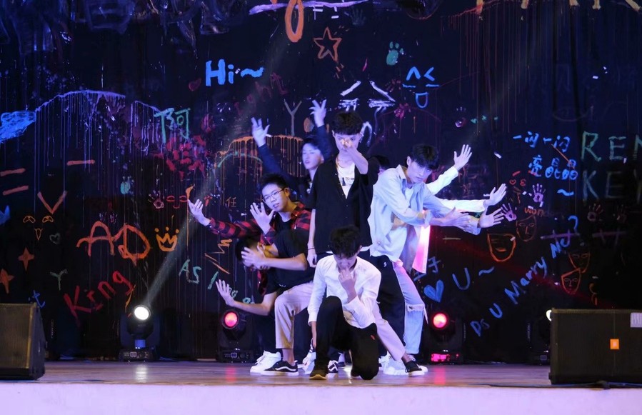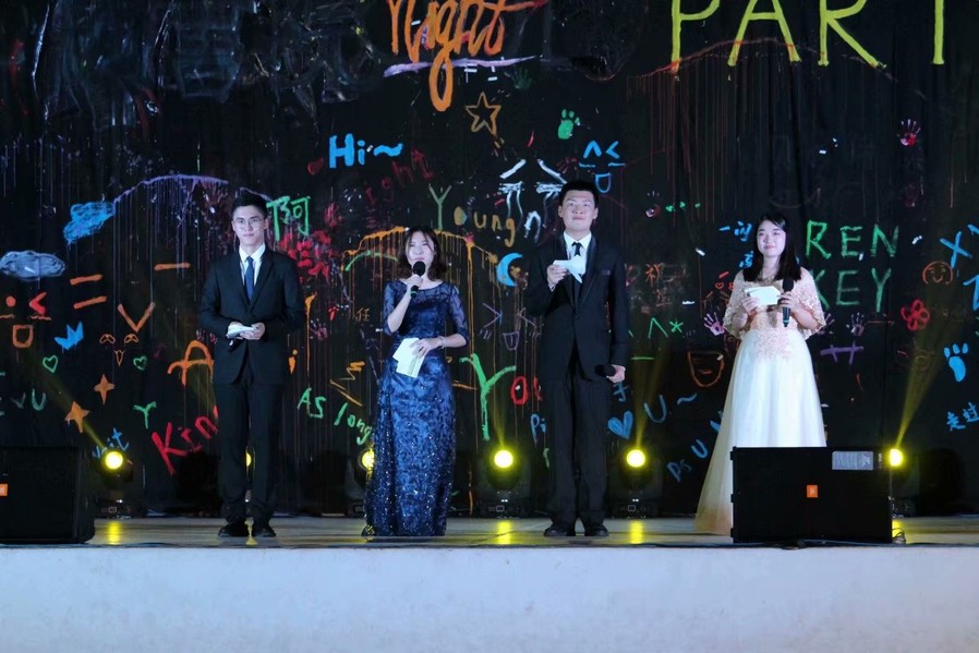 南京工业大学作为南审的友好交流学校,SSO街舞团为晚会带来了开场街舞《forever flower》,精彩纷呈的节目由此开始。声乐团的同学们带来的《倾城》《儿时》《漂洋过海来看你》等歌曲,歌声悠扬、真情流露,同学们打开手电伴着节奏一起挥动,点燃晚会气氛。SF轮滑社、冰魄棍道社、影风空手道社等社团带来的高难度表演更是将晚会气氛推向高潮,尖叫连连、掌声不断。学长郑枭更是以过来人的经验和小萌新们分享了学习的心得感悟。晚会中最惊喜的节目莫过于51视频 老师们带来的歌曲。任凡副教授与两个可爱的孩子带来一首《小叮当》,全场沸腾,一同合唱。胡天成副教授的一首《过雪山草地》唤起同学们要不忘历史,不断前行。
