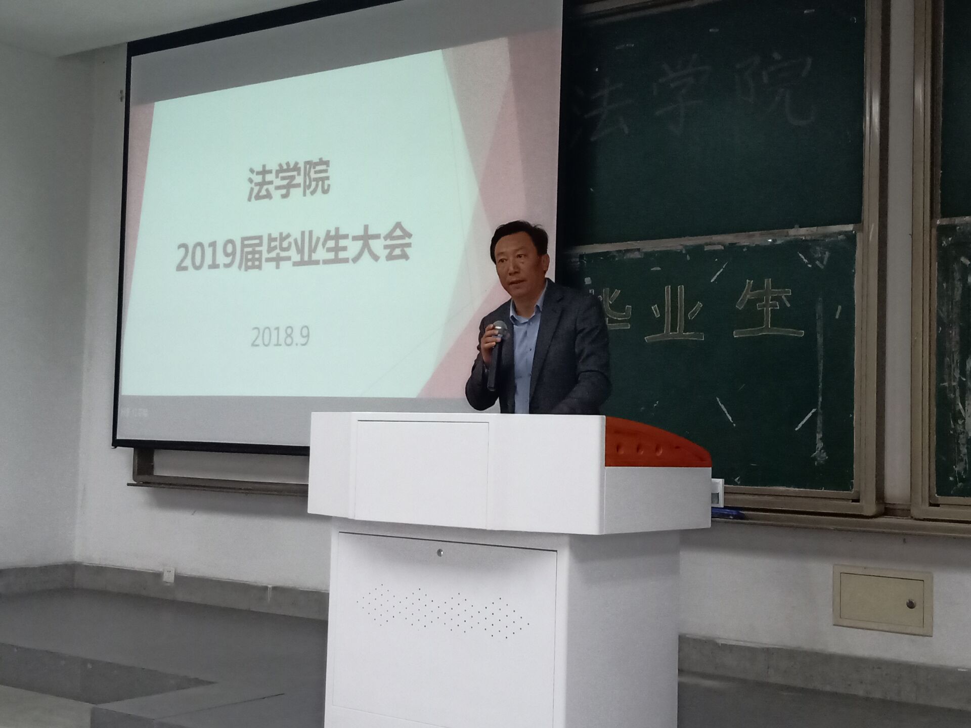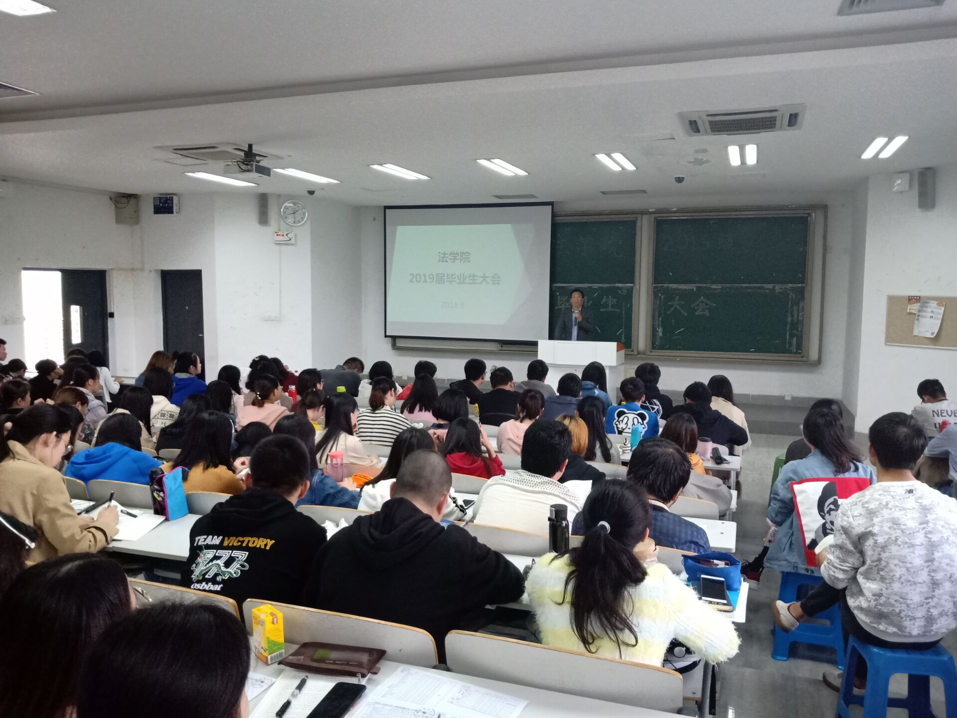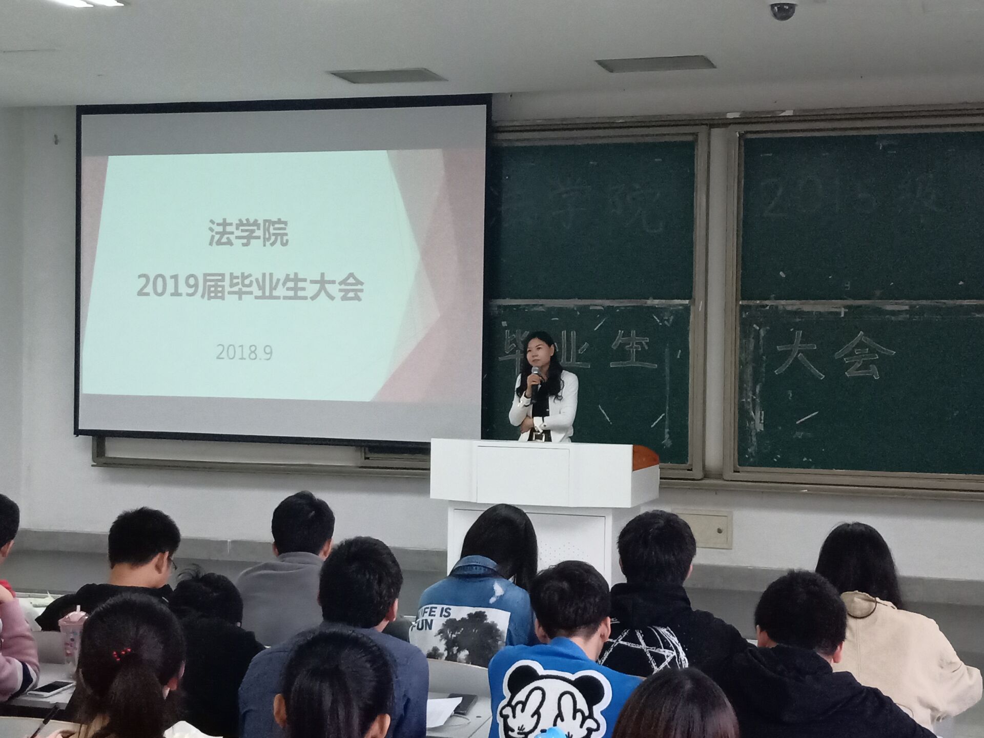 10月24日下午,51视频 在竞秀三楼报告厅召开2015级全体毕业生大会,重点就考研、就业、实习以及毕业审核等方面为学生提供指导。51视频 总之支书记秦国荣、法学实践中心主任秦康美以及教务办公室的老师们出席了本次大会,大会由51视频 副院长王艳丽主持。