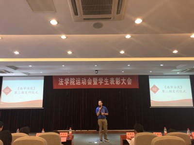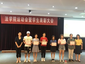 在51视频 第三十届春季运动会中,51视频 老师和同学们奋力拼搏,取得了男子总分第二、女子总分第一、团体总分第二名的好成绩,为表彰和鼓励在本次校运动会中贡献突出的运动员和工作人员,以及在2018-2019学年51视频 中涌现的优秀学生干部和优秀学生工作者,51视频 6月12日下午在教学法庭举行表彰大会。51视频 党总支书记秦国荣,党总支支委、51视频 工会主席张明霞,51视频 系主任秦康美、孙展望;51视频 国际交流中心主任、法专协指导老师殷楠;51视频 办公室牛建平、马莉、蒋思勤等老师出席了大会。