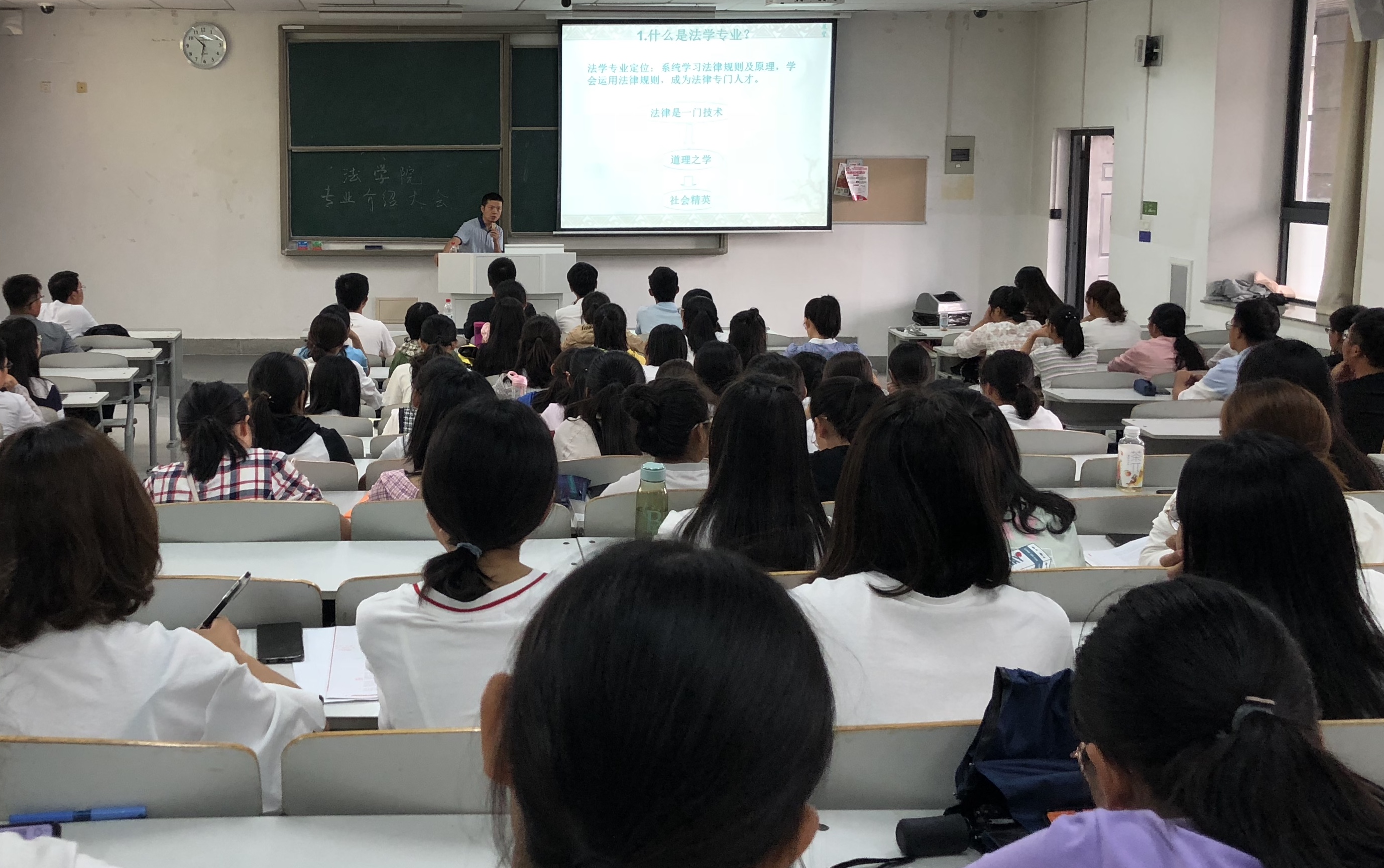 为了给2019级学生的专业学习提供切实指导和帮助,51视频 于9月20日和9月25日在竞秀北楼举办了专业教育大会,法学系主任孙展望、法务金融系主任秦康美和法务会计系朱娟老师分别到场,给2019级新生开展了一次别开生面的专业教育大会。