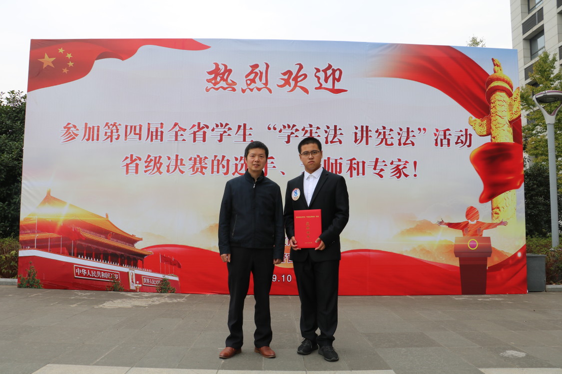 本次省级决赛,经过13个设区市和3个高校片区选拔,共有95名选手参加决赛。比赛分为小学、初中组以及高中、高校组进行。张曹栋同学参加第四届全省学生“学宪法 讲宪法”活动的省级知识竞赛决赛。知识竞赛分为知识考查和知识竞答两个环节,分两天举行,张曹栋同学利用所学知识,结合课外积累,在知识考查环节进行细致分析解答;在知识竞答环节中,他发挥稳定,思维敏捷,答题迅速。张曹栋同学取得了知识竞赛一等奖的优异成绩,孙展望老师获得优秀指导老师奖项。