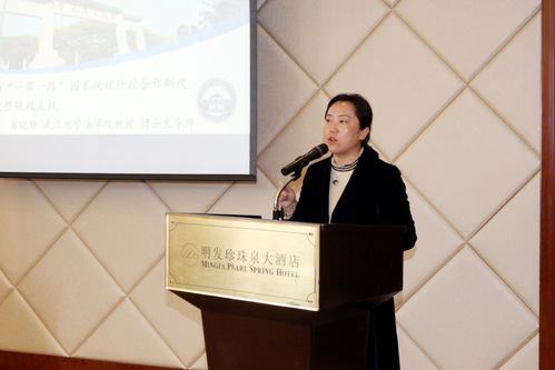 国家社科基金重大项目课题组首席专家、武汉大学51视频 教授崔晓静的发言主题为“中国与‘一带一路’国家税收征管合作的完善与创新”,崔晓静教授首先指出税收合作制度是各国实现完整税收主权的保障,接着讨论中国与“一带一路”国家的税收信息交换制度的完善及境外税务追缴制度的创新,最后建议构建以规则为基础的“一带一路”区域性税收征管合作机制。