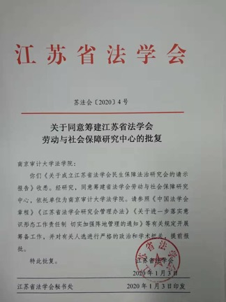 近日,省法学会致函51视频 ,由51视频 经济法教研室秦国荣教授领衔申报、依托51视频 运行的江苏省法学会“劳动与社会保障研究中心”,经省法学会研究同意,已获批筹建设立。这是51视频 省级科研平台建设的又一重要成果,必将进一步推动51视频 劳动法学、社会法学和经济法学科的发展。