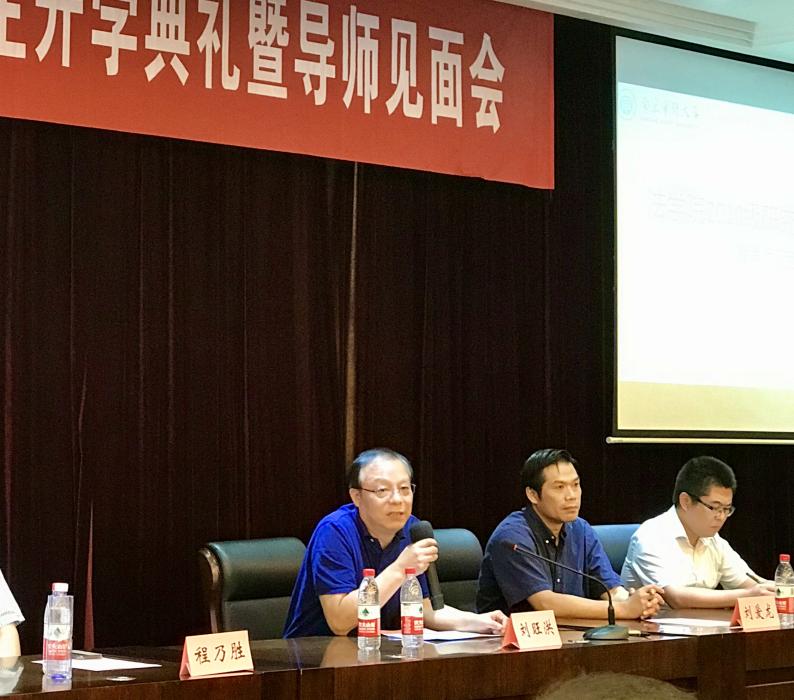 导师代表秦国荣教授从自己的读研经历讲起,语重心长地和同学们就读研期间的学习、科研和生活等问题进行了交流,在研究规划、学术修为、人生伴侣等三个方面对同学们提出了殷切的期望和鼓励。