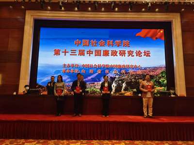 2020年9月24日,中国社会科学院第十三届中国廉政研究论坛在山西召开,本次论坛的主题为“深入推进廉政建设高质量发展”。全国各高校、科研院所和纪检监察执法部门的相关专家近200位参加了此次论坛。与会者就“廉政学基础理论研究“、“纪检监察实践”、“新时代从严治党的重要方略”等主题展开了热烈讨论。