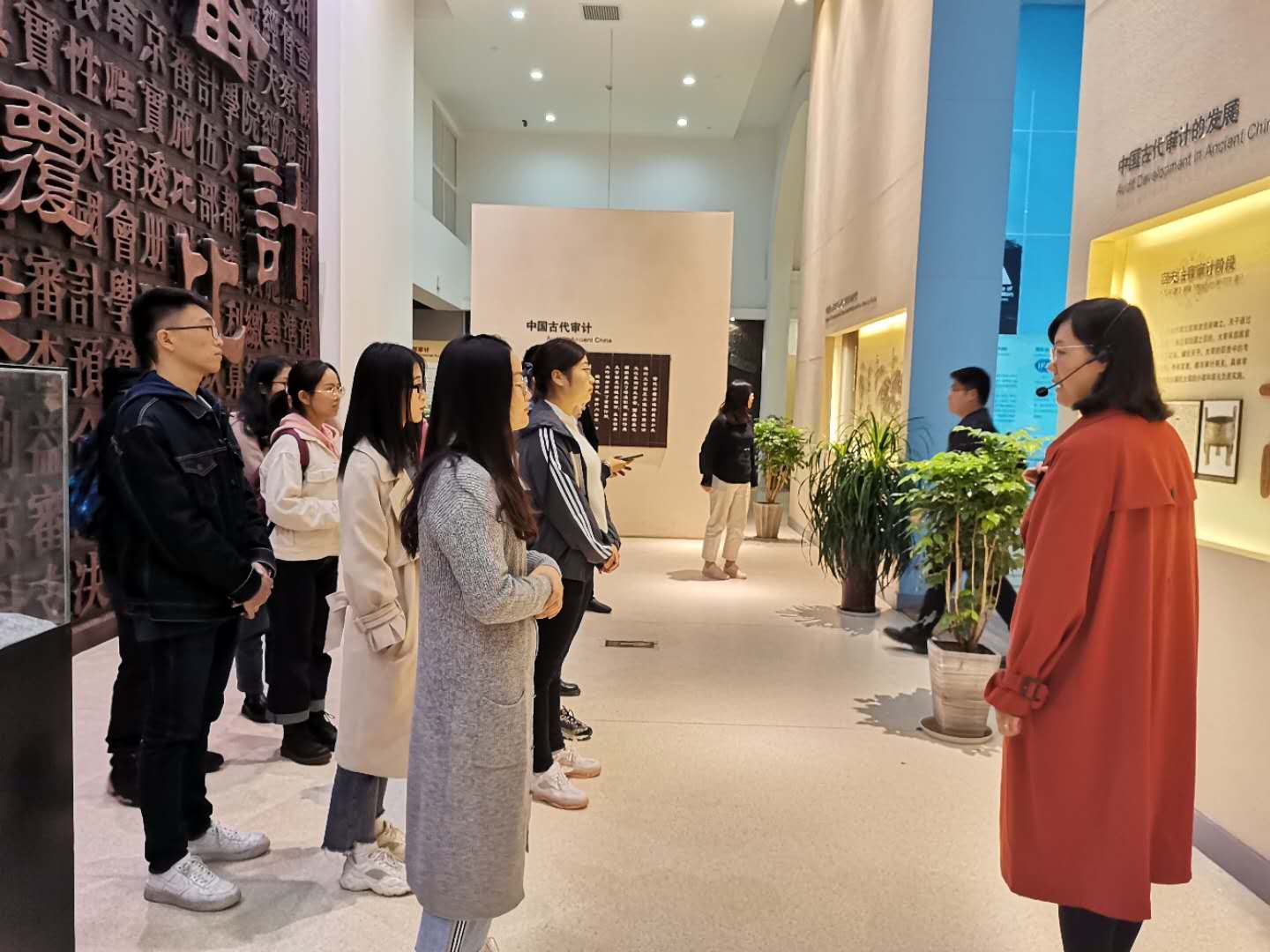 此次党日活动分为两个部分。第一部分,组织研究生支部同学参观校博物馆。迈进博物馆大门,仿佛来到一个全新的世界,一个个充满岁月积淀的物件,一幅幅生动的画面,无不展现着审计古老而智慧的光芒。讲解员一路引领,跨越西周来到宋代又来到当代,回顾了审计发展变革的脉络,这期间涌现出一批代表人物,他们的事迹无不体现了审计精神,即责任、忠诚、清廉、依法、独立、奉献。虽历经千年,审计仍焕发着勃勃生机,对政治经济和生活产生深刻影响。为此同学们感触颇深,励志践行南审许我以荣光,我辈必承审计之重任。