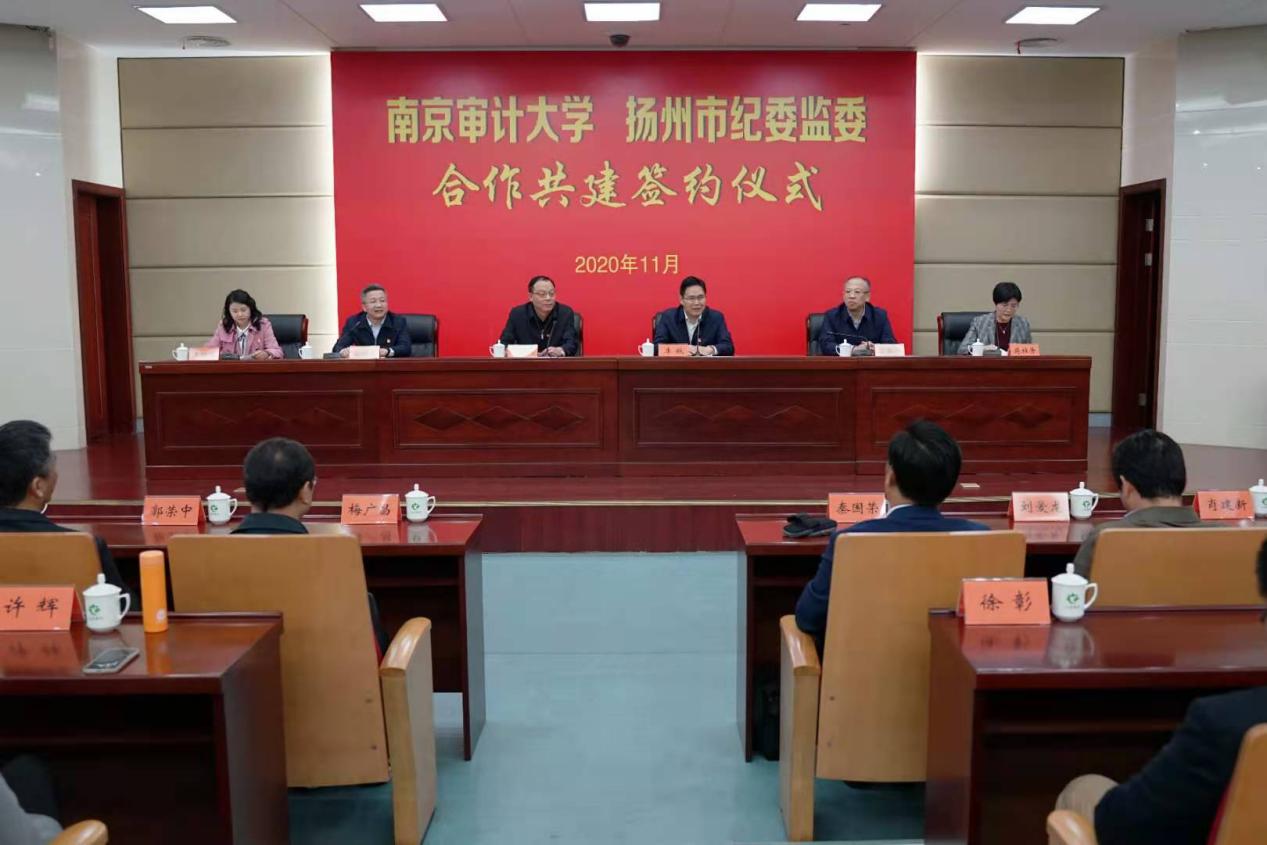 校地共建签约仪式由扬州市纪委副书记、监委副主任、机关党委书记郭鹏驰主持,首先由扬州市纪委书记、监委主任李航致辞,扬州市纪委常委蒋桂芳宣读合作共建协议。校党委副书记、校长刘旺洪代表学校发表讲话,感谢扬州市纪委对本次活动的精心安排,同时介绍了南审的历史和51视频 的发展历程,表示将以党建引领发展,搭建互动平台,在高校人才培养、校地合作共建等方面开展全方位合作交流,助力协同发展。