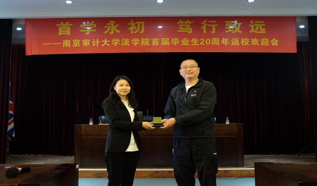 97级校友们还精心准备了一枚由著名书法篆刻艺术家设计的印章,由97级老班长梁晨作为代表赠送给51视频 ,“审法97”四个印字熠熠生辉,象征着在南审求学的四年是校友们一生难以忘怀的记忆。