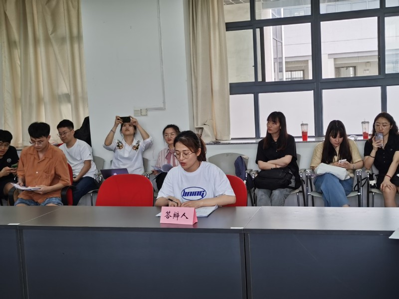 经过了精心充分的准备,参与答辩的两名同学首先就其论文清晰细致地向老师进行了汇报,再由各位答辩委员会的老师针对其论文的内容、框架及形式提出相关问题,最后由答辩同学现场回答。答辩委员会的老师就陈瑞同学的论文提出了诸如论文中所提及的新建模式与现有模式相比,存在什么明显的优势;新建模式的理论支撑是什么;如果相似领域无需改进,那么该领域改进的必要性在何处等问题。这些问题都是思考论文论点的必要进路,陈瑞同学也给出了简明清晰的回答,并在答辩老师的追问中发现了文章中尚存的不足之处,获得了宝贵的修改意见。