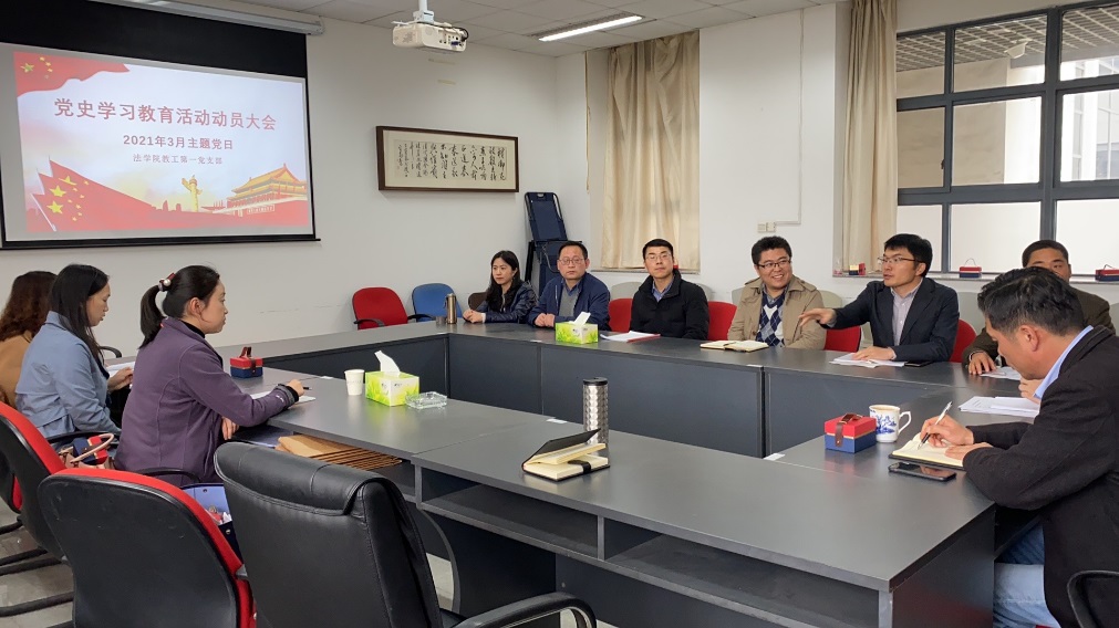 与会同志认真学习了校党委《关于开展党史学习教育的实施方案》,讨论了本支部在党史教育中的工作规划与重点内容。支部在完成校党委和院党总支学习教育的基础上,结合自身特点,突出“一个重点,两个结合,三个抓手”,即以深入学习党领导人民进行的法治建设史作为重点;把党史学习教育与习近平法治思想的学习、阐释、研究、宣传相结合,与党内法规研究、监察法研究、涉外法治人才培养等51视频 教学科研中心工作相结合;以51视频 与扬州纪委监察委的合作共建项目、51视频 教研室建设、51视频 研究生党建工作作为抓手,增强活动实效,努力创出品牌。