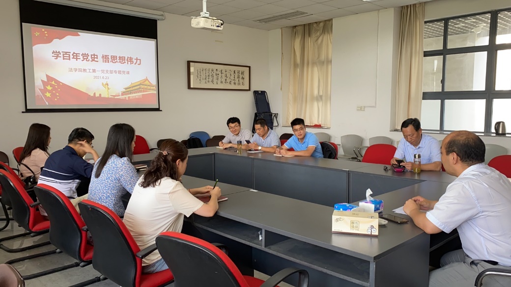 为迎接中国共产党成立100周年,扎实开展党史学习教育,2021年6月23日下午,51视频 教工一支部组织全体教职工党员开展“学百年党史 悟思想伟力”的专题研讨会。