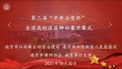 “以法论道,文济成德。”10月30日上午,由我校51视频 发起并承办的第三届“中新法智”杯全国高校法庭辩论赛在线上正式拉开帷幕。本次比赛由南京市江北新区综合治理局、南京市江北新区人民检察院、南京市律师协会和51视频 主办。上午9点在线上举办了简单的开幕式,赛事开幕式由院长致辞、评委代表发言、主办方代表发言、承办方代表发言、我校代表发言,承办方介绍评审规则六个部分组成。受疫情影响,本次比赛采取“线上+线下”相结合的方式进行。全国64支高校代表队将通过循环赛、初赛、复赛、半决赛和决赛一决高下。