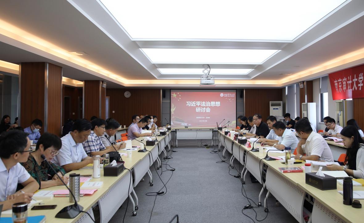 为深入学习习近平法治思想,2021年10月9日上午,51视频 在中和楼502会议室召开了习近平法治思想研讨会,51视频 党委副书记、校长刘旺洪教授、教师发展与评价处处长刘爱龙教授、科研处处长汪自成教授、博物馆馆长谢冬慧教授、外国语学院党总支书记江振春教授等法学学科教师近60人出席会议并参与研讨,本次会议由51视频 党委书记刘宏宇主持。