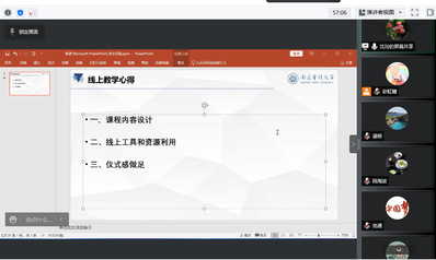 刘宏宇书记带领大家学习了《习近平总书记关于意识形态工作的重要论述》,提醒老师们在网络教学中要严格遵守政治纪律,注意教学内容的规范,对学生进行正确的思想引导。同时,刘书记号召班导师在疫情防控期间要加强对学生的关心,要定期召开班会,与学生沟通交流。沈玲老师从课程内容设计、利用线上工具和资源及授课过程做足仪式感三方面进行了分享。陈苏豪老师从他线上教学的感受、遇到的问题及解决问题的手段与大家进行了交流。他在授课前会先对学生进行学情分析,了解学生情况,根据不同年级学生的不同关注点有针对性的开展教学。