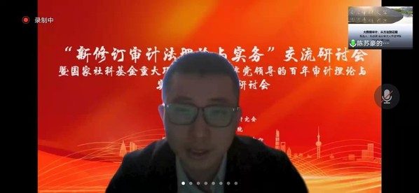 为进一步加强审计法理论研究,推动新修订审计法顺利实施, 4月16日,江苏省法学会审计法学研究会,51视频 、国家审计研究院审计法治研究中心、政府审计与区域治理法治化研究院联合召开“新修订审计法理论与实务”交流研讨会暨国家社科基金重大项目“中国共产党领导的百年审计理论与实践研究”专题研讨会。根据疫情防控要求,本次研讨会采取线上形式召开。来自理论界和实务界的专家以及51视频 研究生共70余人参加。