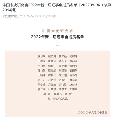 近日,中国宋史研究会公布了2022年新一届理事会成员名单,51视频 肖建教教授当选。中国宋史研究会是由民政部登记、教育部主管,全国宋史研究者自愿结成的非盈利的学术性团体。该会成员长期以来致力于宋史研究,为弘扬中国优秀文化传统,促进精神文明建设,加强国内外学术文化交流做出贡献。据悉,本届理事会共有理事成员35人,来自北京大学、清华大学、中国科学院、复旦大学、华东师范大学、西北大学、河北大学等全国各高等院校及科研院所。