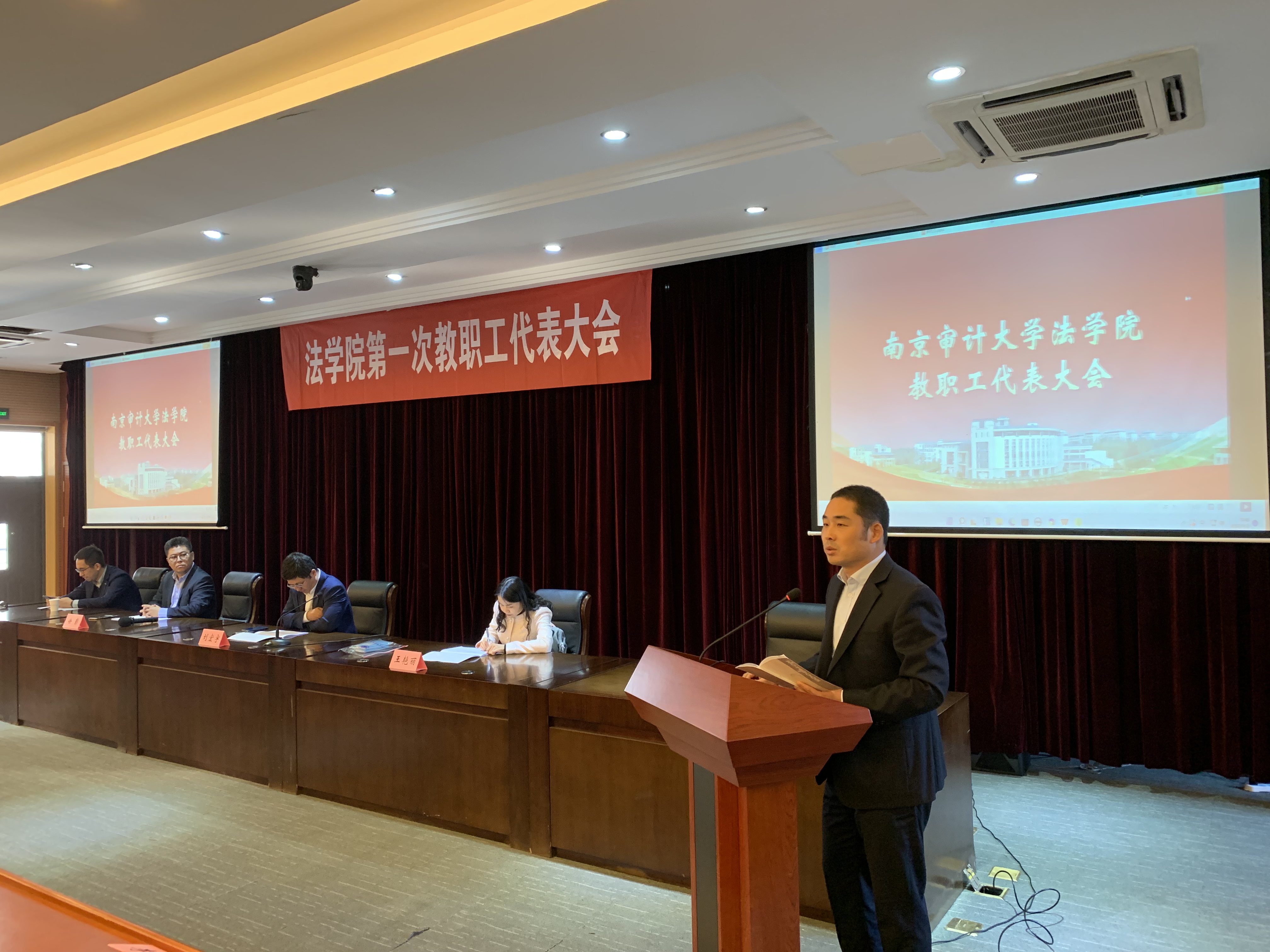 11月2日下午,法学院第一届教职工代表大会在文心二楼模拟教学法庭召开,学院领导班子及全体教职工代表参加会议。会议由党委书记刘宏宇主持。