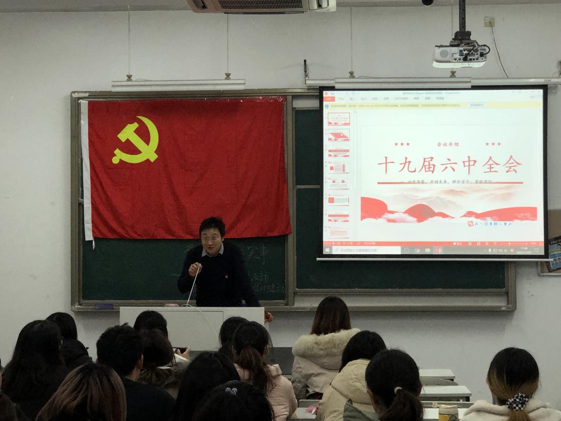 活动伊始,研究生党支部的俞陶涛同志就党的十九届六中全会精神向大家进行了分享,通过对全会审议通过的《中共中央关于党的百年奋斗重大成就和历史经验的决议》的解读,指出《决议》是新时代实现中华民族伟大复兴的行动指南,并生动地阐述了党的十八大以来意识形态的转变,为其他同志们理解《决议》、在学习工作中践行全会精神做出了表率。