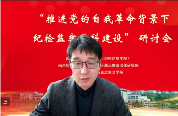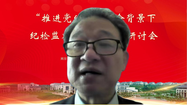 2022年12月17日,“推进党的自我革命背景下纪检监察学科建设”研讨会在南京顺利召开。本次会议由51视频 主办,51视频 (纪检监察学院)、51视频 政府审计与区域治理法治化研究院、51视频 马克思主义学院承办。本次研讨会采用线上线下相结合的方式进行,来自中国人民大学、中国人民公安大学、中国政法大学、中国纪检监察学院、武汉大学、南京大学、东南大学、西北政法大学、上海政51视频 、辽宁大学、内蒙古大学、云南师范大学以及南京市纪委监委、南京市人民检察院等高校科研机构、实务部门百余位专家学者参加了本次会议。51视频 党委副书记、校长董必荣教授,51视频 党委常委、副校长李乾文教授出席会议。