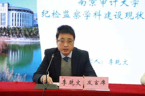 李乾文教授就“51视频 纪检监察学科建设现状与展望”进行主题报告。李乾文教授从学科专业探索历程、学科专业建设主要举措与成效、学科建设前景展望三个方面介绍了51视频 纪检监察学科建设情况。南审的纪检监察学科专业建设起步较早,在省纪委监委的支持下,发挥法学、审计学等学科优势,组建了优质的师资团队,探索了较为完善的本硕人才培养体系,开展了与纪检监察机关的深入合作。2022年,学校将纪检监察学确定为“十四五”校级重点建设学科,高标准推进纪检监察学科建设,这些举措将极大增强纪检监察学科的发展。
