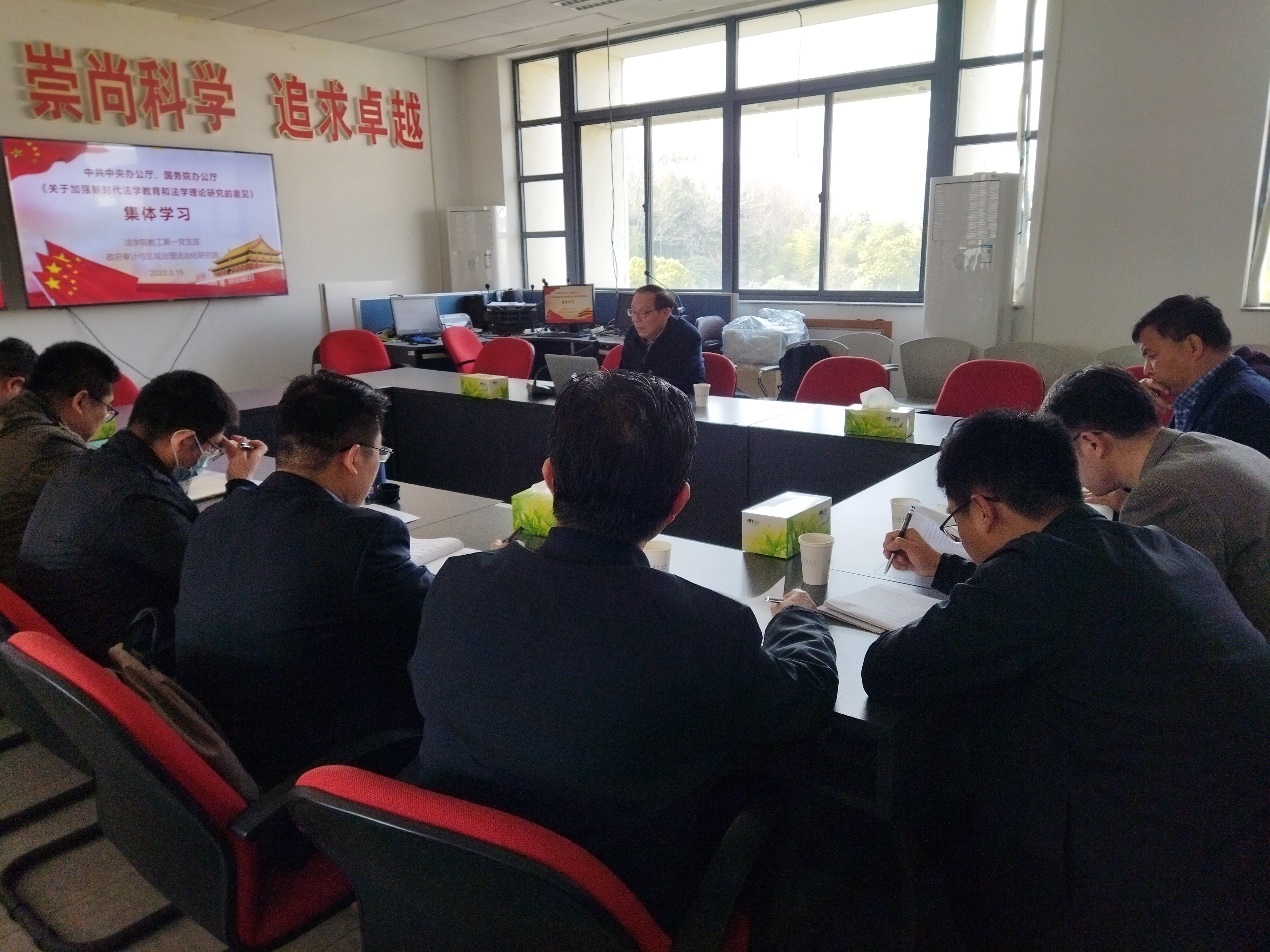 组织生活会上,全体党员首先就党的二十大精神、习近平总书记重要讲话精神、“两办”《关于加强新时代法学教育和法学理论研究的意见》精神开展集体学习,集体学习由51视频 原校长刘旺洪教授领学。刘旺洪教授首先介绍了《意见》出台的背景,指出当下我国法学教育与法学理论应当努力适应中国化与时代化的要求,为中国式现代化的伟大征程作出应有贡献。随后刘旺洪教授就《意见》的六个方面内容共十七条意见逐一进行了讲解。在讲解中,刘旺洪教授结合自身丰富的法学教育经验和深厚的法学理论功底,对《意见》精神进行了全面阐释,既有优化法学学科体系的宏观思考,也有结合南审法学教育实际而进行的具体问题剖析,在互联网时代的法学教育如何开展,实践教学如何深化,党内法规如何研究,法治人才的政治素质如何培育,51视频 基层党组织活动品牌如何打造等问题上都提出了明确的建议。刘旺洪教授领学之后,何永红教授、赵永红教授、蔡金荣教授、胡天成副教授、刘宏宇书记先后发言,畅谈自己对《意见》精神的学习体会,表示要结合自身实际,找准切入点,在教学、科研、人才培养、党建工作中贯彻《意见》精神。