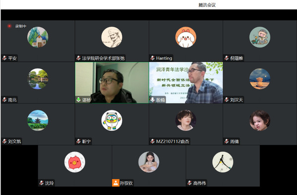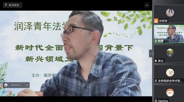 为深入学习贯彻落实两会精神,全面践行习近平法治思想,着力推进社会主义现代化法治建设,4月2日晚,51视频 召开润泽青年法学沙龙,特别邀请51视频 各学科方向的倪蕴帷、谌杨、靳宁、沈玲、陈苏豪、郝炜等十余位青年教师,就“新时代全面依法治国背景下新兴领域立法问题研究”进行研讨,会议由51视频 副院长殷楠主持。