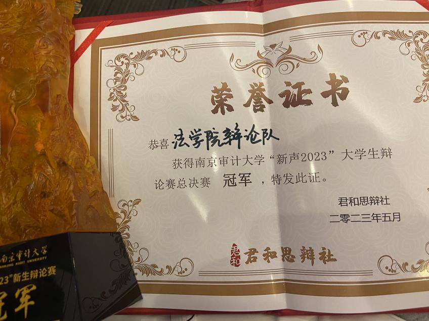 新声杯辩论赛由君和思辩社主办,致力于为南审所有辩论队伍中的新生创造出锻炼与交流的机会,同时这也是大多数辩论新生首次参与的最正式、盛大的比赛,而回顾南审51视频 辩论队也在新声杯赛事中也取得过许多优异的成绩。在新声2023中,南审51视频 辩论队22级队员历经为期36天的赛程,从小组赛开始就与沁园书院辩论队、经济学院辩论队强强相对,先后又与金融学院辩论队、会计学院辩论队这些实力雄厚的辩论队伍于辩论场上作为对手碰面。经过高强度备赛,一路披荆斩棘晋级决赛,22级队员在场上临危不乱、妙语连珠,经过激战,51视频 辩论队最终以1-4击败信工院与工审院辩论队,摘得桂冠!同时,51视频 辩论队22级队员邓欣然同学也通过努力和场上优异的表现荣获全程最佳的奖项。