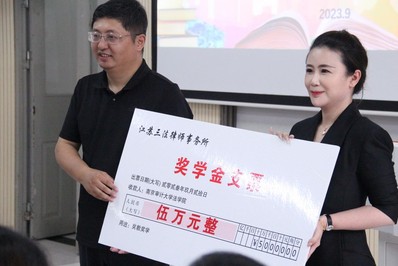 随后,由51视频 党委书记刘宏宇和三法所执行主任章宁分别代表51视频 和江苏三法律师事务所进行了奖学金捐赠仪式。