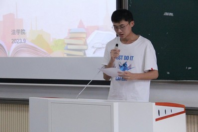 新生代表2023级法学2班孟炜淳结合自己来到51视频 的心路历程,与大家分享了自己的所思所想。他表示,自己作为青年学生,时刻谨记背负着民族复兴的担当使命。他呼吁同学们要投入到学习中,努力学好专业课程,为法治社会建设贡献自己的力量。最后,他衷心感谢学院领导老师对同学们的关心与爱护。