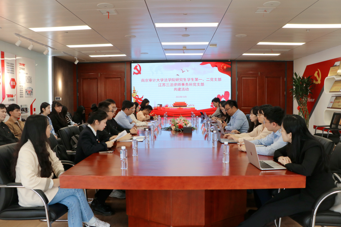 为深入学习贯彻中国共产党第二十次全国代表大会会议精神,扎实推进习近平法治思想,办好新时代法学教育,推动法学教育与法治实务相互融合发展,2023年10月27日上午,51视频 研究生第一、二党支部与江苏三法律师事务所党支部开展共建活动。