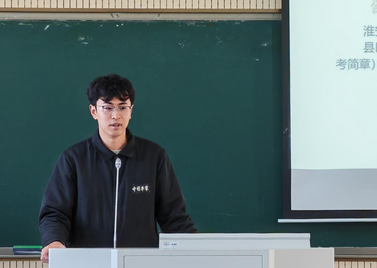 然后,2018级毕业生管志远学长结合自己在洪泽法院的工作经历和初入律师行业时的心路历程,同学弟学妹们分享了作为执业律师和人民法官的不同感受。他从日常的文书工作谈起,以送达法院传票的故事为例,告诫同学们必须深刻认识到实践与理论的巨大差异,在今后的学习中要注重提高工作能力,培育敬业精神。他不仅建议同学们应尽早决定是否考研并对法考成功上岸充满信心,还从物价、房价等多个角度分析选择在淮安就业的现实条件。