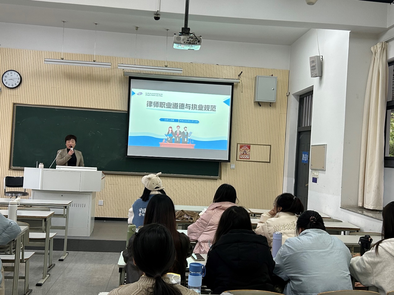 2023年11月14日,江苏欣达律师事务所执行主任、南京市律师协会惩戒专门委员会副主任闵婕律师受邀走进51视频 法律诊所课堂,为同学们讲授”律师职业道德与职业规范”专题,以丰富的实践经验为同学们打开了律师执业道德与职业规范大门。