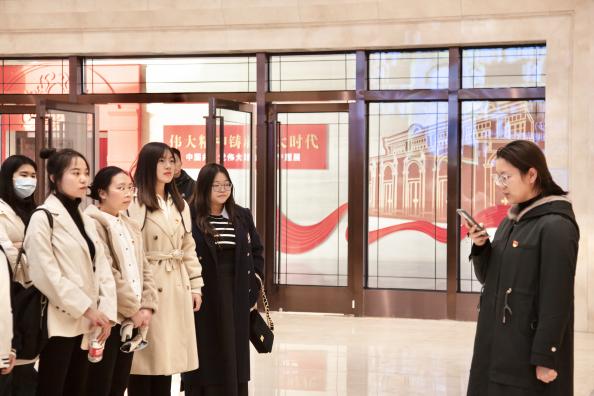 在党史展览馆内,同学们回顾了党的百年历程,学习了伟大建党精神。51视频 孙自勉老师带领所有党员同学面向中国共产党党旗,重温入党誓词,庄严宣誓,牢记共产党员的初心与使命。