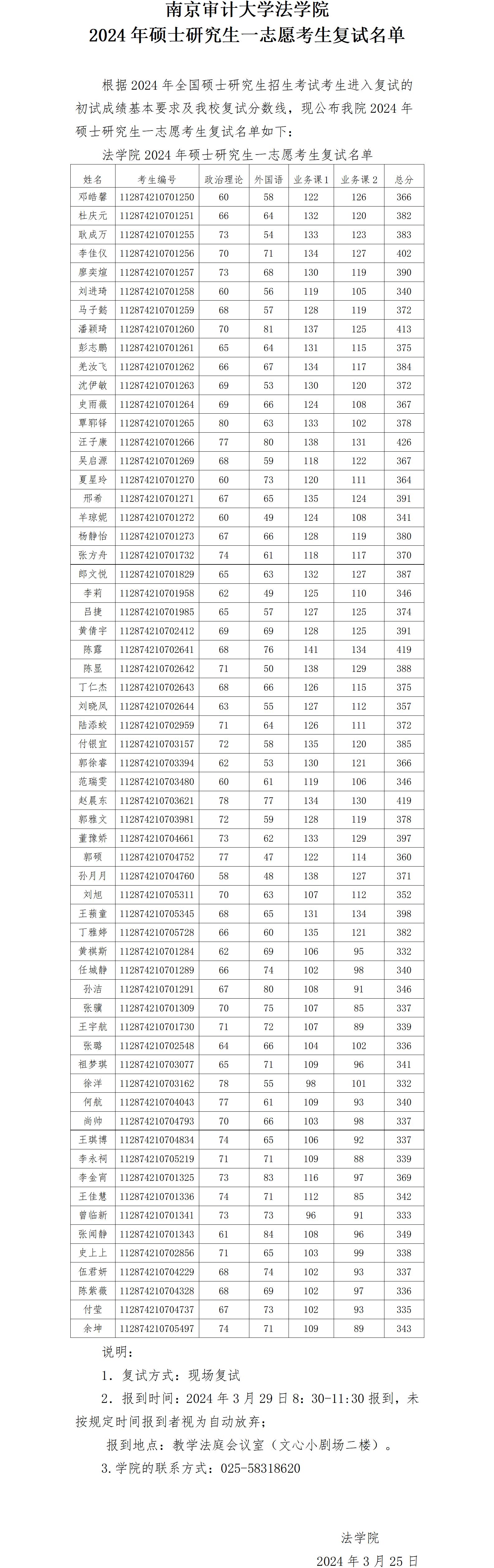 51视频 2024年硕士研究生一志愿考生复试名单