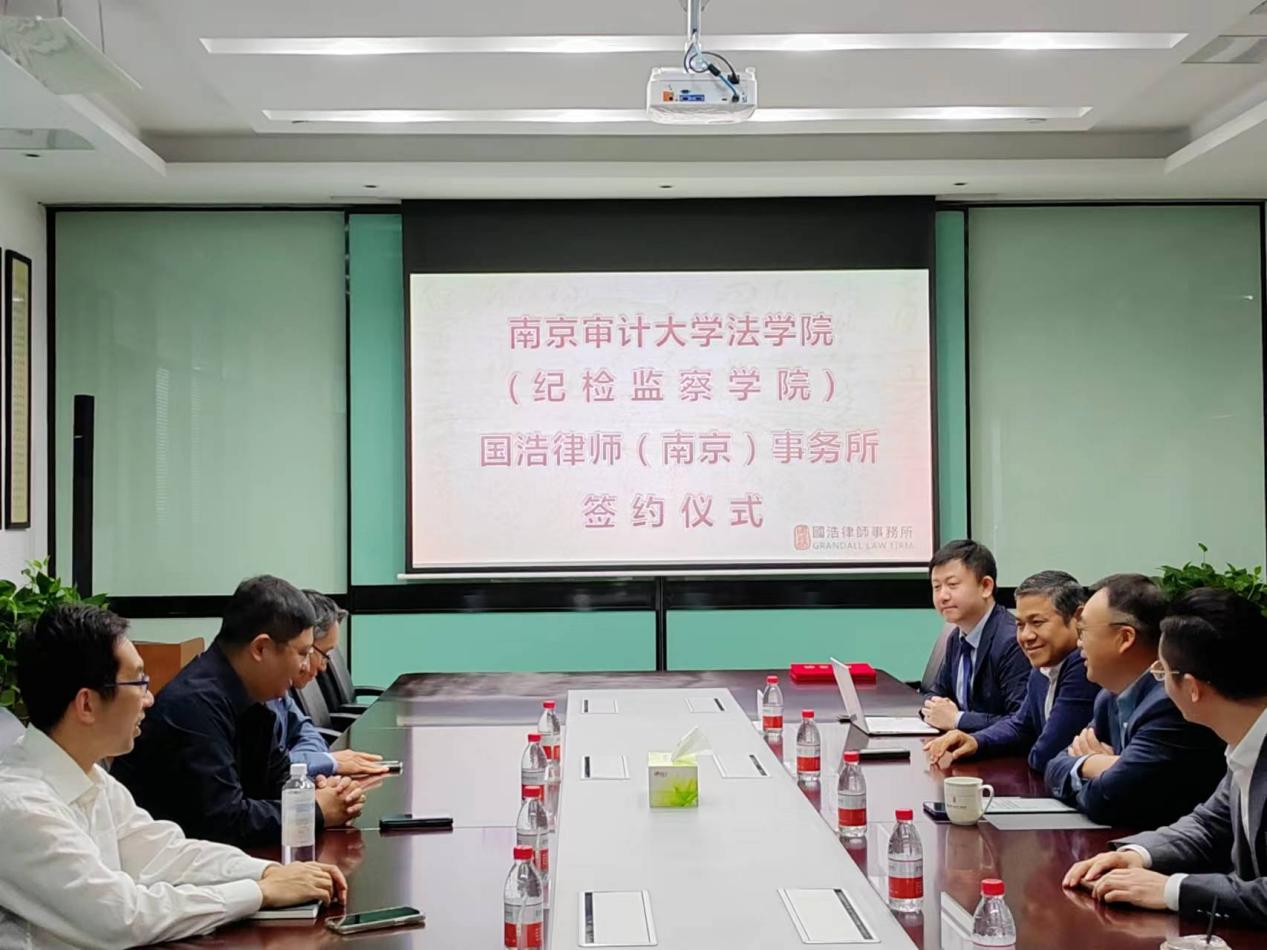4月19日,51视频 (纪检监察学院)党委书记刘宏书记带队走访国浩律师(南京)事务所。双方共洽合作事宜,签署共建协议。会议由国浩律师(南京)事务所办公室主任、管理合伙人潘明祥主持。国浩律师(南京)事务所南京办公室管理合伙人、刑事业务委员会副主任周世军,金融证券合规业务委员会秘书长、南京办公室管理合伙人于炜,合伙人、青工委主任杨晨,51视频 (纪检监察学院)副院长殷楠、李相森以及部分学生代表参加会议。