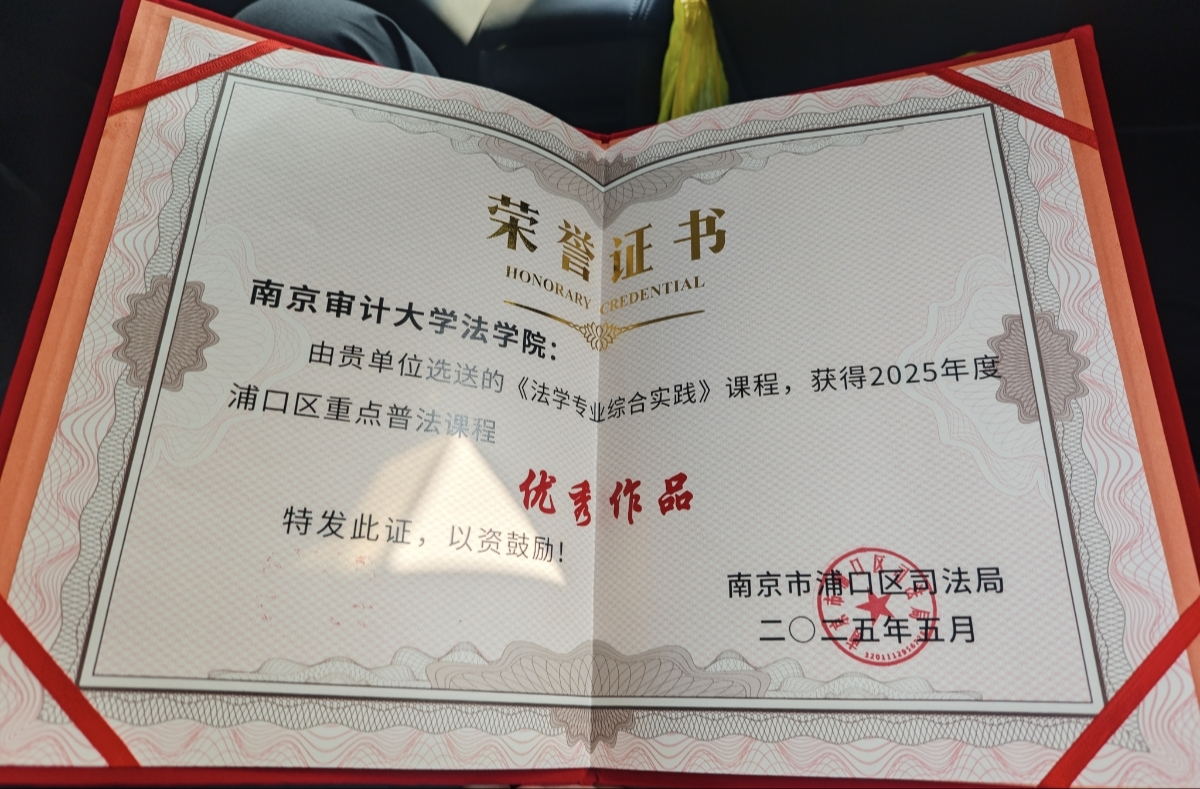值得一提的是,在此次活动中,学生代表张怀今还上台领取了51视频 荣获的“优秀普法课程”获奖证书。这一荣誉不仅是对51视频 过往普法工作的高度肯定,也激励着更多南审学子投身法治建设。未来,南审51视频 的学子们将继续在法治宣传的道路上砥砺前行,用青春力量助力法治社会建设。