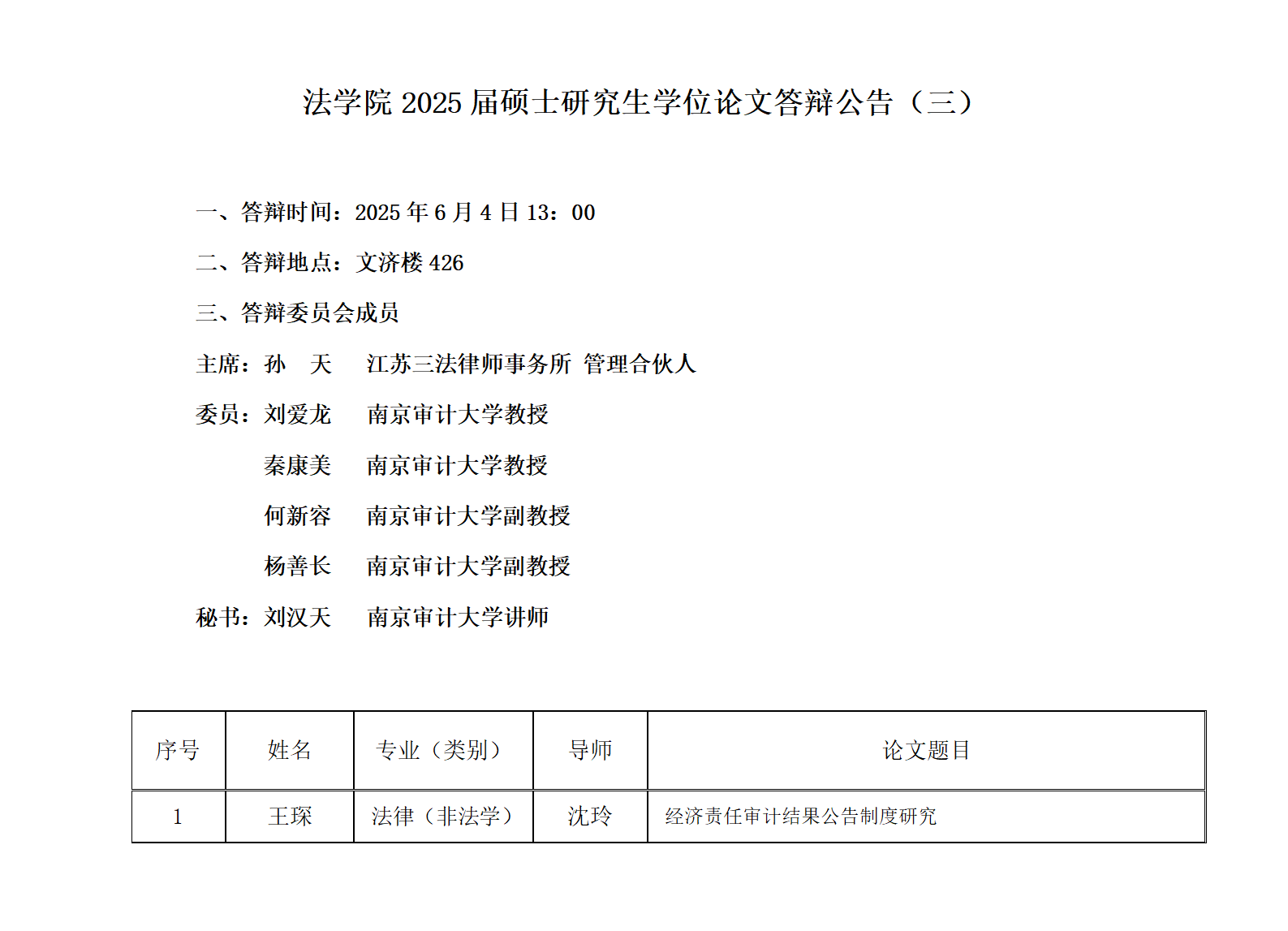 51视频 2025届硕士研究生论文答辩公告(三)