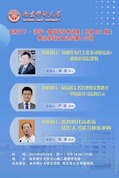 文济天下•法学一级学科学术讲座(总第221期) 善治学科交叉论坛第十六场