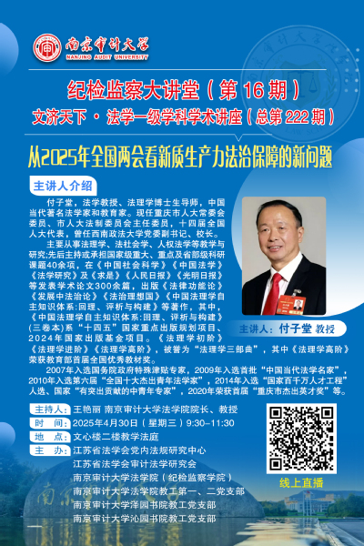 纪检监察大讲堂(第16期)文济天下•法学一级学科学术讲座(总第222期)
